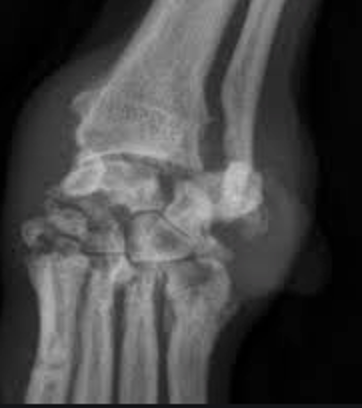 The most commonly affected joints are carpus, tarsus, stifle, and elbow. However, any joint can be affected. Erosive IMPA causes bone destruction and in advanced cases, joint collapse of digits, carpi, and tarsi are not uncommon. This is due to subsequent damage to supporting soft tissues. Non-erosive IMPA presents with effusion or no effusion, joint pain or no pain, and no joint instability or bone destruction.